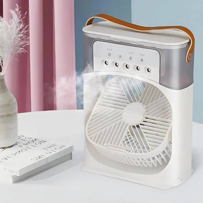 Táto prenosná klimatizácia 5 v 1 je kombináciou zvlhčovača vzduchu, aróma difuzéra (pridaním arómy do vody v nádržke), nočného svetla (7 rôznych farebných podsvietení), klimatizácie a stolného ventilátora. Počas chladnejších období pomáha udržovať optimálnu úroveň vlhkosti, čím zlepšuje kvalitu vzduchu a pohodlie - na jeseň a v zime vzduch zvlhčuje. Zvlhčovač funguje aj ako aromaterapeutický difuzér, ktorý vám umožní vychutnať si svoje obľúbené esenciálne oleje pri zachovaní zdravej úrovne vlhkosti. 7farebné LED osvetlenie - Vytvorte relaxačnú a upokojujúcu atmosféru s nastaviteľnými možnosťami osvetlenia, ktoré vylepšia akýkoľvek priestor. Ideálne pre náladové osvetlenie, romantické večere alebo dekoratívne akcenty v spálňach, obývacích izbách alebo na vonkajších terasách. Keď v horúcom lete pridáte ľad do vody v nádržke, ucítite chladný vzduch a užijete si ľadové leto, na jeseň av zime zvlhčuje vzduch. Otočná hlava môže byť použitá na nasmerovanie vzduchu o 180° doľava alebo doprava a štrbiny môžu byť použité na nasmerovanie vzduchu nahor alebo nadol. Ventilátor má 3 režimy rýchlosti (nízka/stredná/vysoká) a 3 režimy zvlhčovania vzduchu. Nádržka na vodu s objemom 600 ml zaručuje dlhú prevádzku a chladiaci účinok. Funkcia časovača - možnosť nastavenia časovača na 1/2/3 hodiny s automatickým vypnutím ventilátora. Môžete ho používať doma na stole alebo v kancelárii, v spálni, v aute, v stane, v karavane atď. Stačí pripojiť USB C kábel - kompatibilný s počítačom, mobilným napájaním, nabíjačkou do auta a ďalšími napájacími zdrojmi s podporou USB. Nízka spotreba energie, väčšia ochrana životného prostredia a úspora energie. V balení: klimatizácia 5 v 1, návod, usb C kábel