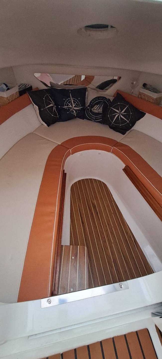 Čistá a zachovalá kajutová lod Quicksilver 620 Cruiser + motor Mercury 115hp EFI pr. 2020, najetých iba 180hod. K lodi je komplet BIMINI s bočnicami. Ide o model s perfektným vyvážením priestoru, hmotnosti a ceny. Loď prevážam na vleku 1800kg. Kajuta pojme 2 dospelých + dieťa, prípadne je možné použiť ďalšie rozkladacie lôžko na palube. Odvetranie kajuty uzatvárateľným oknom, osvetlenie, kvalitná hudba so zosilňovačom, USB zásuvky, guľatá 12V, úložné priestory. Pozičné osvetlenie, komplet bimini, prevozná plachta, odnímateľný stolík a sedačky, rozkladacie opaľovacie lôžko, pod palubou je veľký úložný priestor prístupný aj z kajuty, priestor pre chladničku. Odnímateľná kuchynka s varičom. Palubná sprcha, nádrž 67 litrov na vodu, nádrž na palivo 135litrov, automatické čerpadlo, 2x batéria, hydraulické riadenie, el. kotevný naviják na diaľkové ovládanie s reťazom, nerez zábradlie, nerez rebrík, keramická splachovacia toaleta – ktorá sa nepoužívala, miesto pre chemickú toaletu, GPS + echo, húkačka, celá paluba s príjemným EVA teakom, čistá a zachovalá loď na okamžité užívanie bez ďalších investícií. Celková dĺžka lode bez motora je 665 cm, registrované na SPS, vr. poistenia. Cena za loď s motorom 115hp je 34 000, - EUR. Teraz po zľave cena 28 000,00 EUR Možnosť PROTIÚČTU vášho motora či lode. ČESKÝ TELEFON: 00420 608070180, Táto e-mailová adresa je chránená pred spamovacími robotmi. Na jej zobrazenie potrebujete mať nainštalovaný JavaScript. Po dohode, možnosť dodania lode po celej SR.