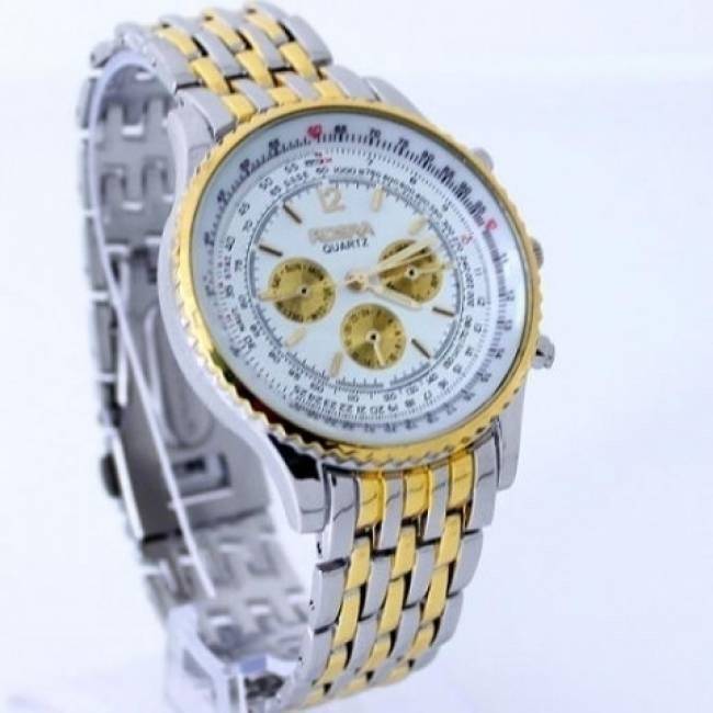 Predám nové elegantné analógové pánske náramkové hodinky s luxusným dizajnom v strieborno-zlatej kombinácii. Remienok a ciferník hodiniek sú z nerezovej ocele, priemer ciferníka cca 4,5 cm, dĺžka remienka cca 21,5 cm. Krásny a praktický darček pre muža ! Cena už od 6€