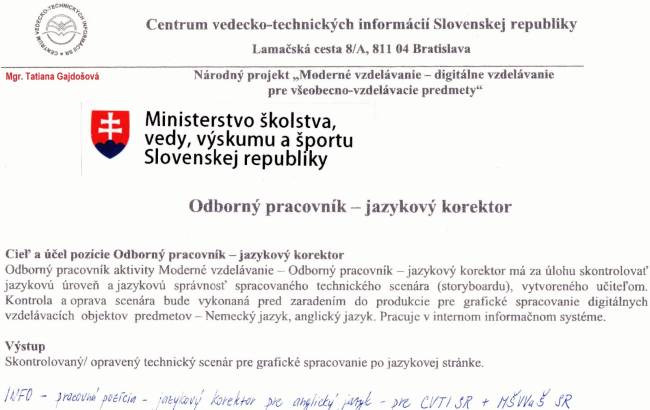 Kurz alebo doučovanie angličtiny pre všetky úrovne náročnosti a vekové skupiny online cez Messenger. Prax: 10 rokov praxe vo vyučovaní AJ na základnej a strednej škole vrátane praxe vo výučbe žiakov so špec. vzdelávacími potrebami, ako napr. dysgrafia, dyslexia, ADHD + zatiaľ 4 roky praxe = online výučba. Hlavná prac. činnosť: preklady a korektúry textov v angličtine. Vzdelanie: maturita z AJ, štátna záverečná skúška na jazykovej škole, Cambridge certifikát + VŠ vzdelanie (Mgr.) v odbore angl. jazyk a anglická a americká literatúra na UK Bratislava. Level znalosti angličtiny: C2 alebo podľa niektorých testov C1 Cena: 1 vyučovacia hodina = 50 minút = 8 eur Pozn.: Prvá vyuč. hodina je zadarmo.